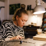 Zoë Nina was trained as a goldsmith and artist by Froukje van der Avoird. She then collaborated with Froukje in the shop in Amsterdam that they co-founded together. In her years at BLOU, she has developed an adventurous style that captures not only the eye, but also the story of the materials used. She uses contrast in rough and refined materials to bring out contrast and natural origins of the world. As a colleague, she complemented Froukje and Margriet’s work to contribute to a diversity of nature-focused styles of jewelry in BLOU.