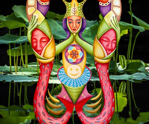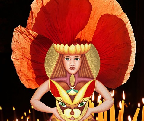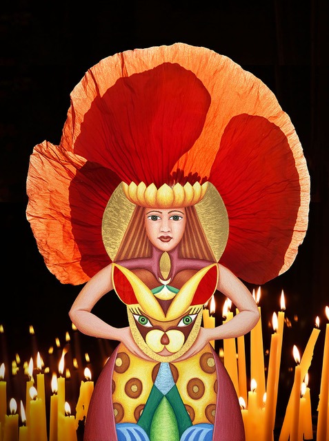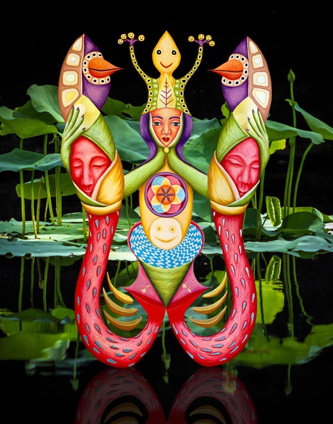 De basis van elke digitale collage is een uniek werk op papier, een zielsportret. Het portret zelf is altijd een co-creatie tussen mij en de geportretteerde spirit. Achteraf fotografeer ik het werk en combineer het in Photoshop met foto’s en illustraties om een collage te bouwen die de spirit in een omgeving tot leven brengt die aansluit bij mijn waarneming. Samen willen wij helpen om je magie en zielenfamilie te herinneren.