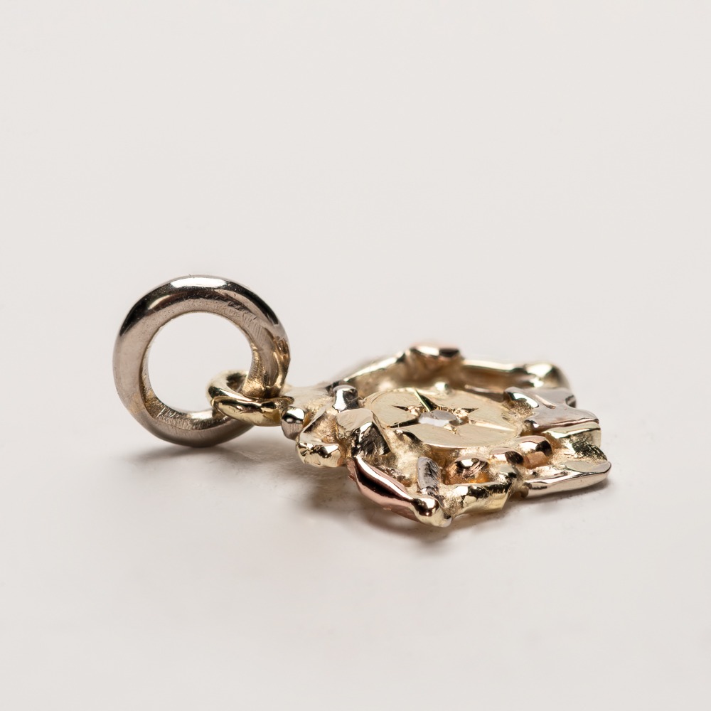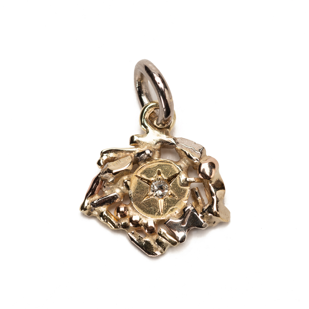this sweet gold pendant is made of different pieces gold from goldsmith’s bench, a diamond centered star set in the middle. Als possible to make one of youre own gold pieces.