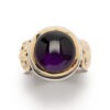 gemstone: 14 mm / 0.55 inch (excl. 18K gold setting) round deep purple cabochon cut amethyst