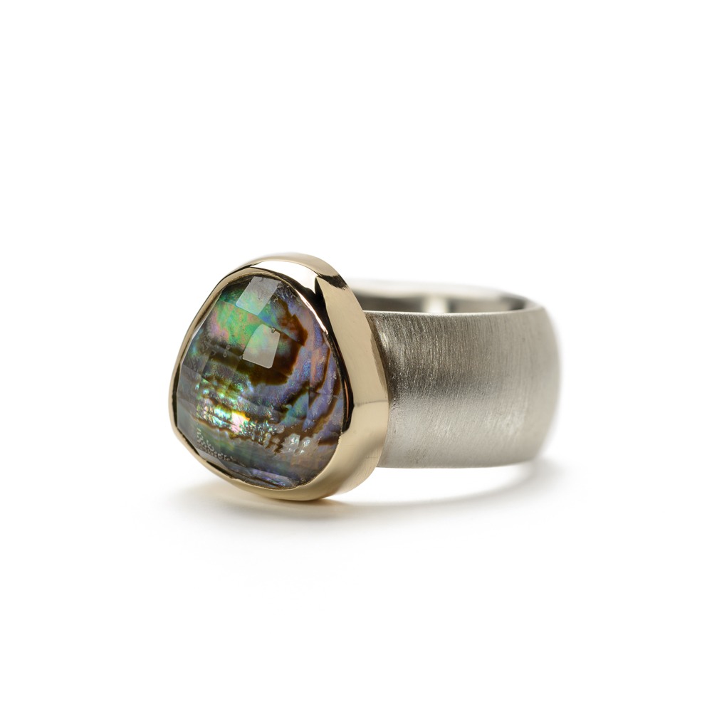 The Abalone and Crystal Doublet Ring by goldsmith Froukje van der Avoird