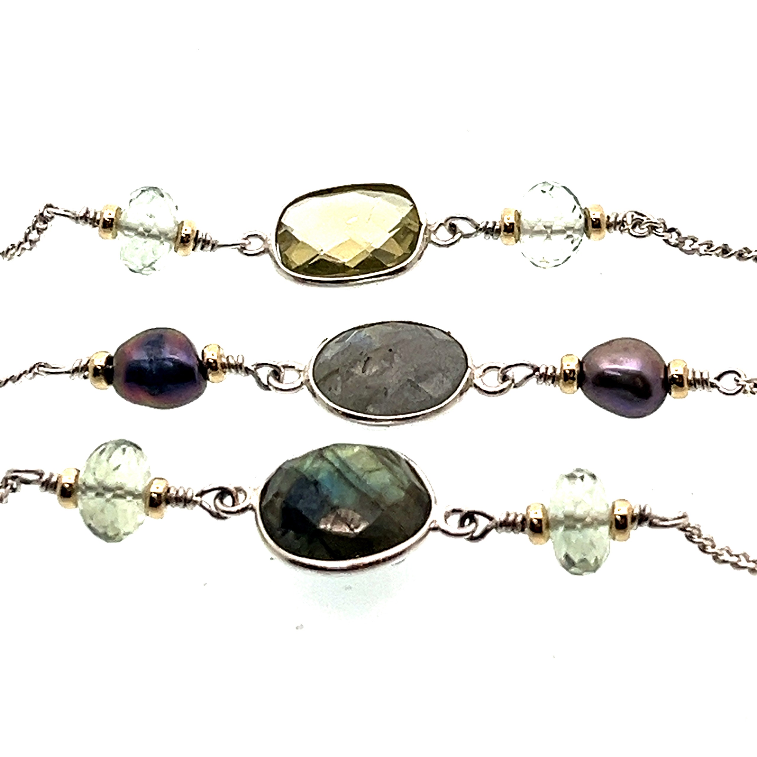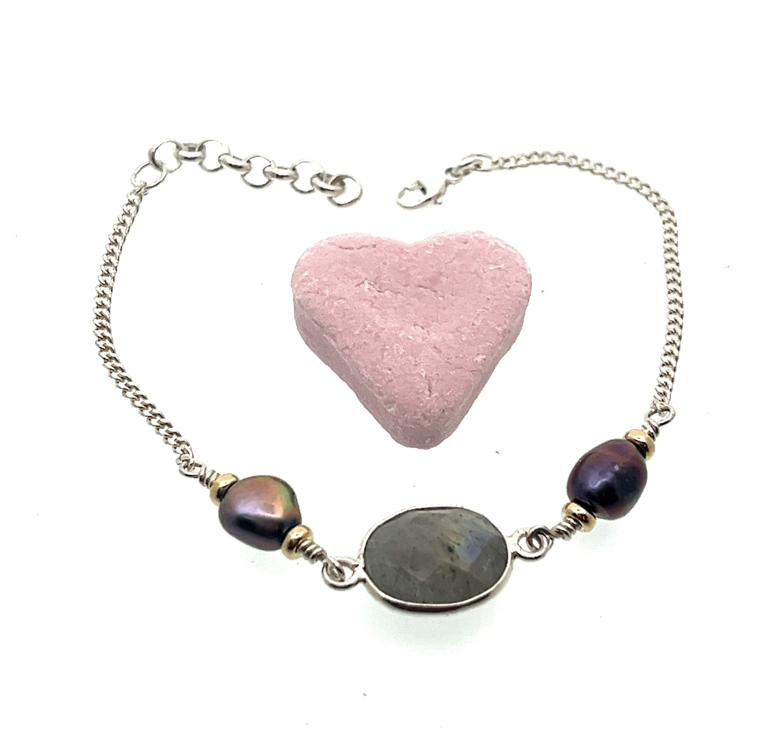 The Bracelet with Labradorite and Pearls contains the following materials.