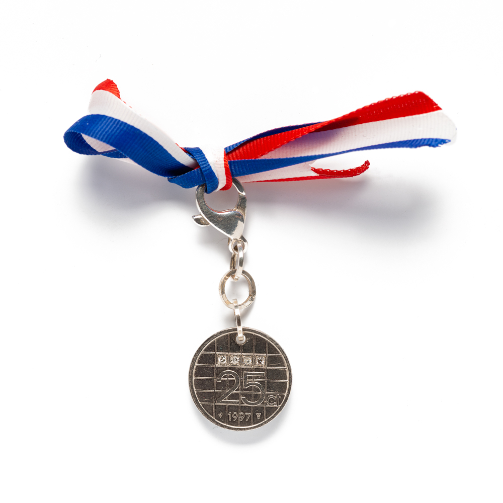 Diamond Medal prosperity coin a nice and surprising gift, suiteable for male and female. Dutch quarter set with broken dreams brilliant with hooklock, to use as keychain or zipperlip gadget